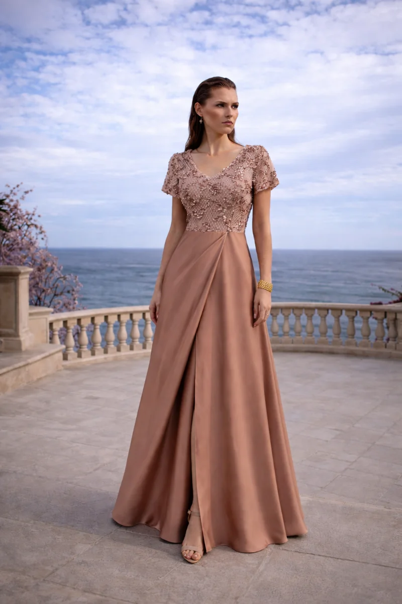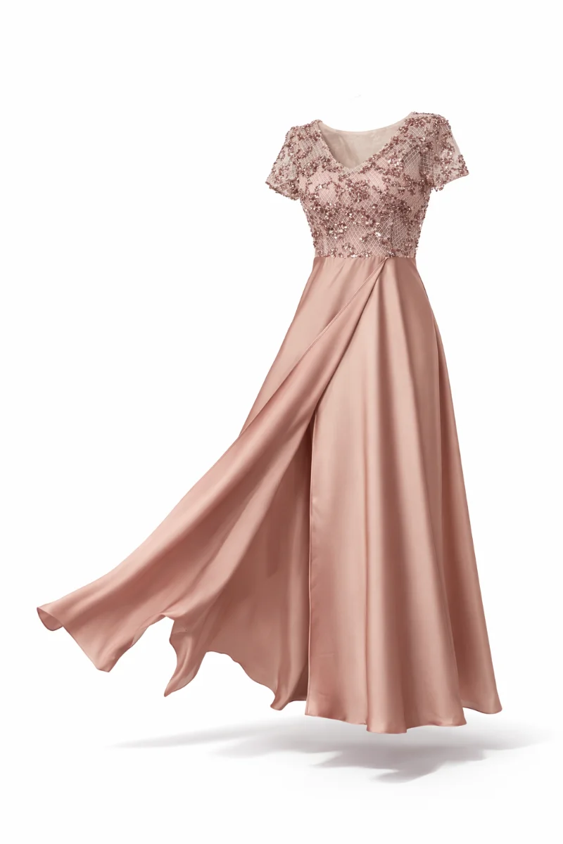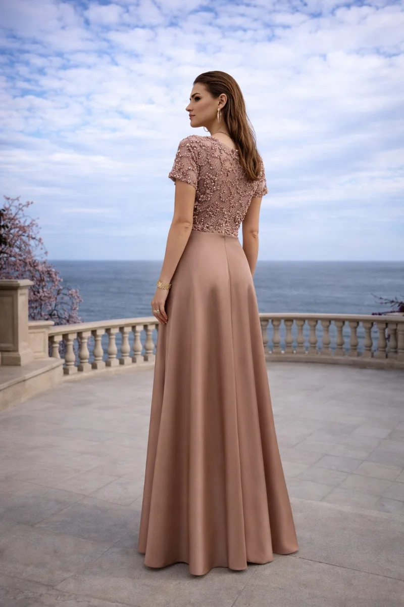 Φόρεμα για γάμο με ρομαντική και elegant αισθητική • Μπούστο με ντεκολτέ σε σχήμα V από δαντέλα • Διαφάνεια στο επάνω μέρος που αναδεικνύει διακριτικά το ντεκολτέ • Εσωτερικό μπούστο σε σχήμα καρδιάς για θηλυκό και φίνο αποτέλεσμα • Κοντό μανίκι από δαντέλα που χαρίζει κομψότητα και άνεση • Φούστα φάκελος σε φαρδιά γραμμή • Σατέν ύφασμα silk touch με απαλή υφή και φυσική κίνηση • Τονίζει όμορφα τη μέση και κολακεύει τη σιλουέτα