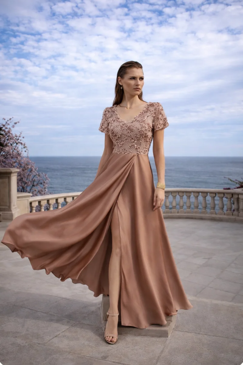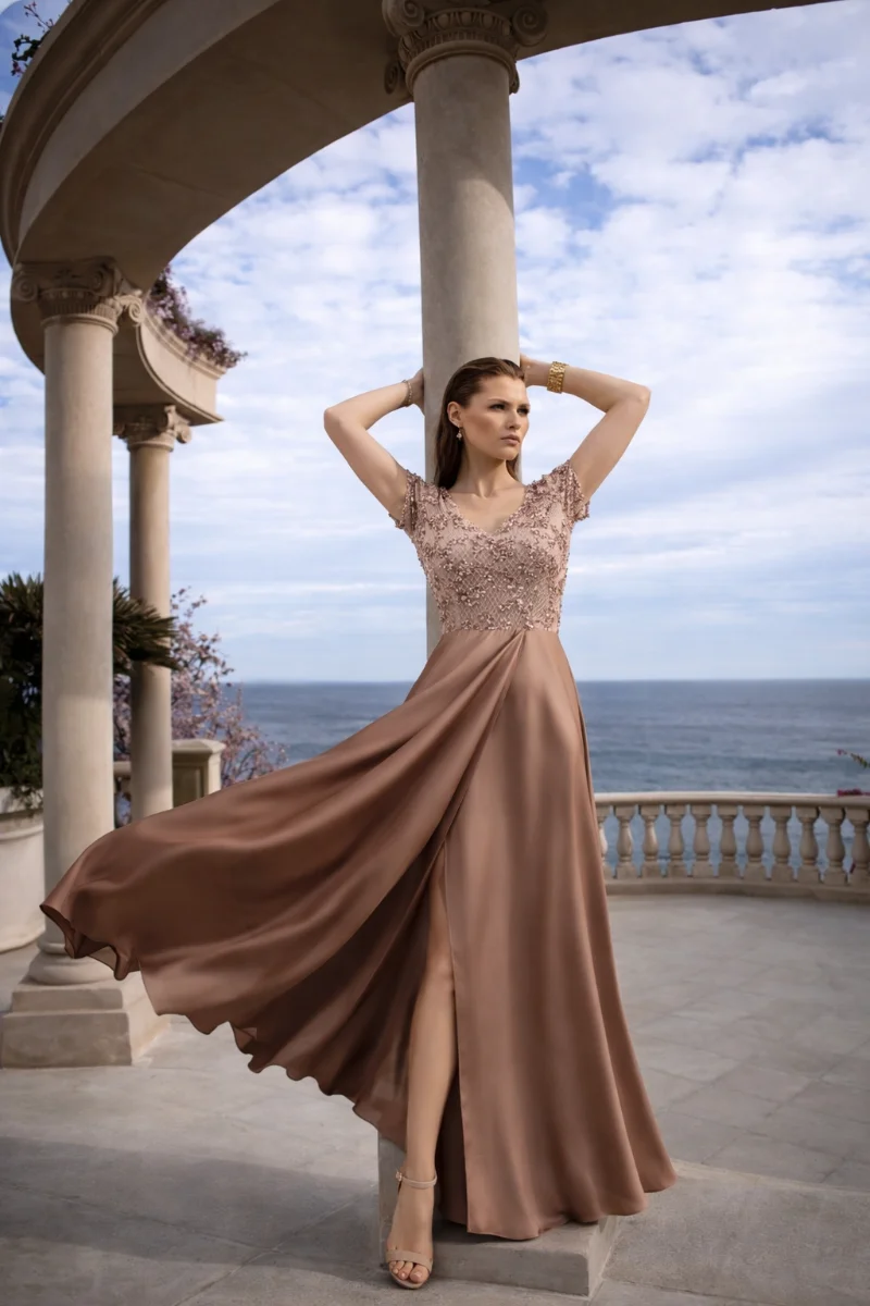 Κοντό φόρεμα βραδινό από γραμμική κεντημένη δαντέλα, με φίνα υφή και υψηλή αισθητική • Μπούστο με V ντεκολτέ που αναδεικνύει διακριτικά τη θηλυκότητα • Κλειστή πλάτη, σχεδιασμένη για κομψή και διαχρονική γραμμή • Συνοδεύεται από αποσπώμενη φούστα από πολυτελές σατέν silk touch • Η σατέν φούστα δένει με κορδόνια, δημιουργώντας αίσθηση couture εφαρμογής • Σχεδιασμός 2-σε-1, που μεταμορφώνει το look από minimal chic σε απόλυτα εντυπωσιακό • Φοριέται είτε ως κομψό κοντό φόρεμα είτε με τη μακριά φούστα για statement εμφάνιση • Ιδανική επιλογή για γάμο, επίσημη δεξίωση και υψηλού επιπέδου βραδινές εμφανίσεις • Ένα κομμάτι που συνδυάζει ευελιξία, πολυτέλεια και σύγχρονη κομψότητα