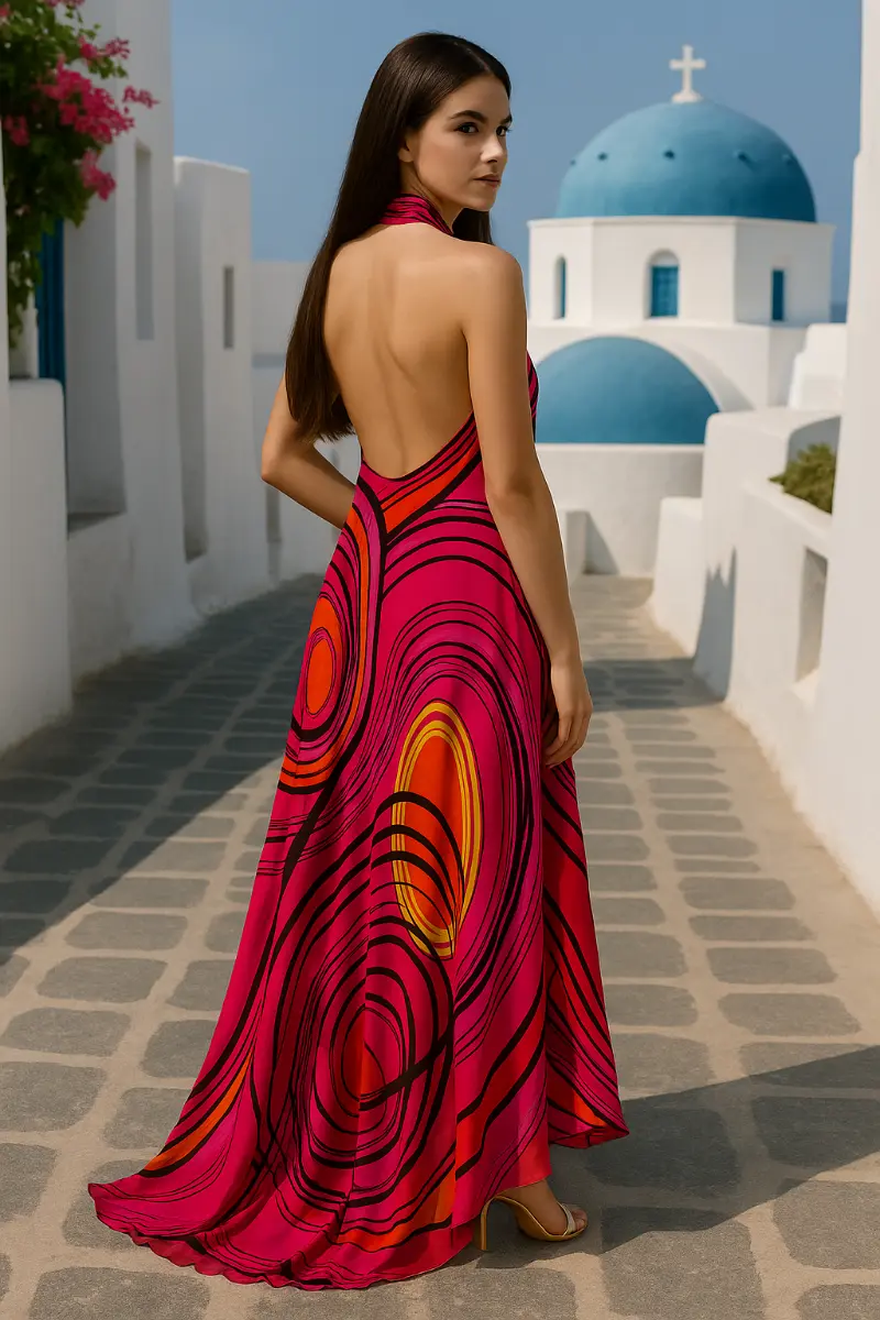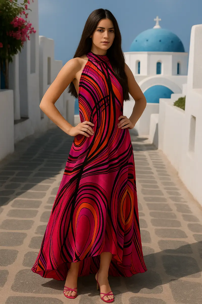 Ένα φόρεμα που συνδυάζει κομψότητα και άνεση, ιδανικό για βραδινές εξόδους, καλοκαιρινούς γάμους ή ειδικές περιστάσεις όπου θέλεις να ξεχωρίσεις.
