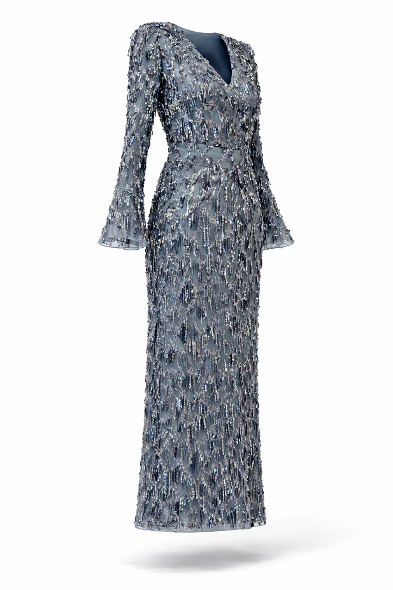Φόρεμα για γάμο με ιδιαίτερο χαρακτήρα • Εντυπωσιακό κρόσσι που προσθέτει κίνηση και δυναμισμό σε κάθε βήμα • Κρουαζέ μπούστο που αγκαλιάζει κομψά το σώμα και κολακεύει το ντεκολτέ • Φούστα φάκελος για θηλυκή και elegant σιλουέτα • Μακριά μανίκια με βολάν στο τελείωμα για ρομαντική και fashion λεπτομέρεια • Άψογη εφαρμογή που αναδεικνύει τη μέση • Ιδανικό για καλεσμένη σε γάμο ή επίσημη κοινωνική εκδήλωση • Ένα statement φόρεμα που συνδυάζει μόδα, κίνηση και κομψότητα